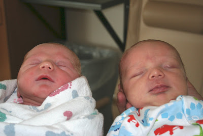 Heather and Dan brought the kids over later in the morning. Tucker and Aubrey were sooo excited to see their new baby brother. Cole just wanted me to hold him and didn't really care about the baby. I'm sure that will change next week when he comes home. We have fantastic parents who are taking Tucker, Aubrey and Cole for the week.